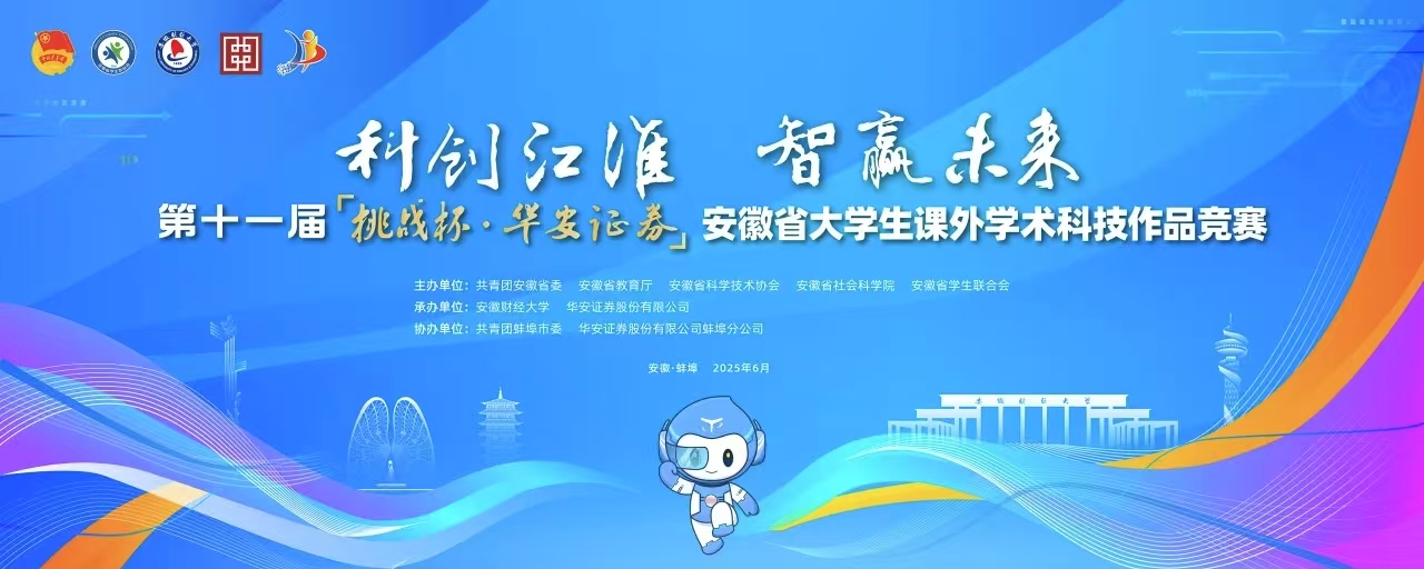 6月10日至12日,由团省委、省教育厅、省社科院、省科协、省学联联合主办的第十一届“挑战杯·华安证券”安徽省大学生课外学术科技作品竞赛省级决赛在安徽财经大学成功举办。