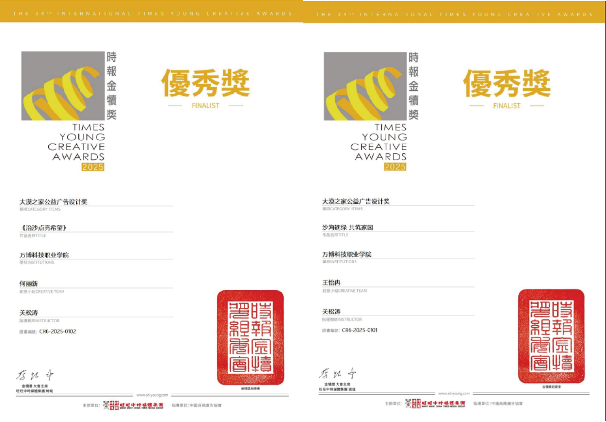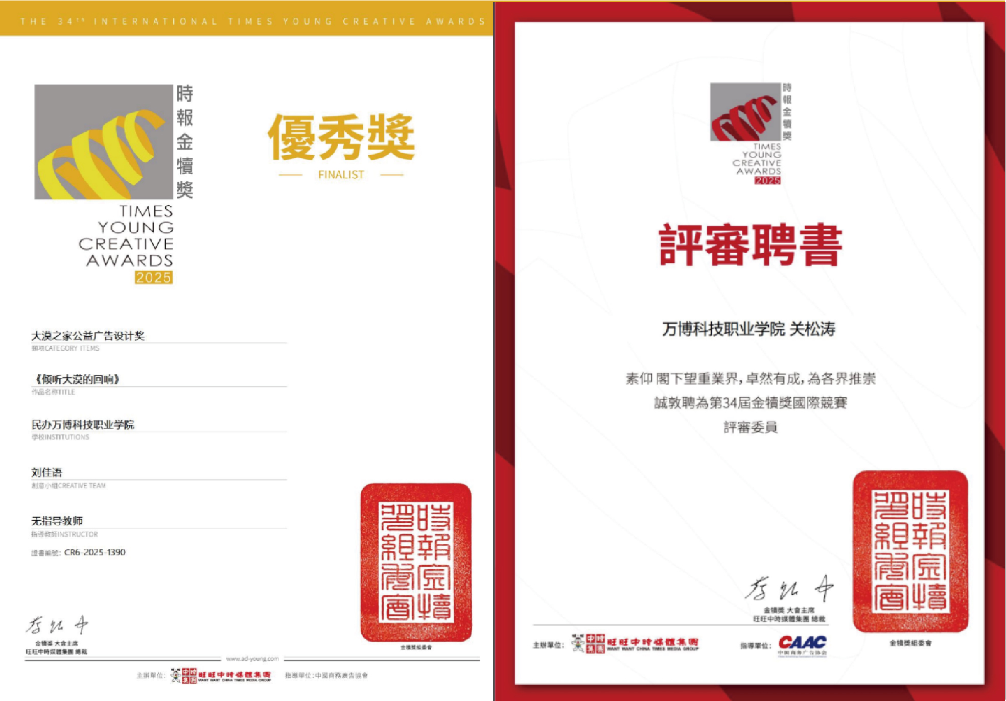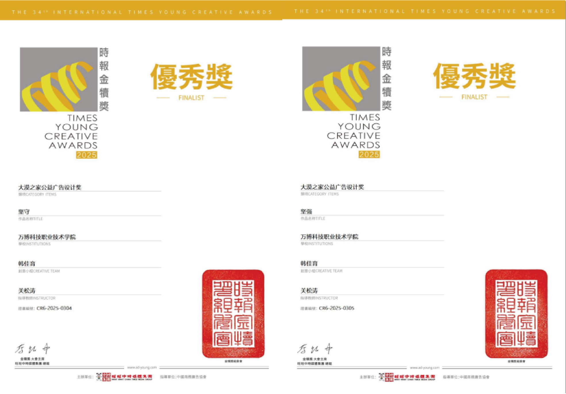 据悉,时报金犊奖创办于1992年,截至2025年已经连续举办34年,是由中国时报创办,旺旺中时媒体集团主办,中国商务广告协会指导的全球华文青年创意大赛,是全球华人地区历史悠久、覆盖面广的华文青年创意活动。因作业严谨、专业权威,被行业称为“青年创意的奥斯卡”,是华人圈历史最悠久的青年创意奖项。本次是BEAT365师生第一次参加此项竞赛,是艺术设计类专业在国际性学科竞赛中的一次检验与突破。