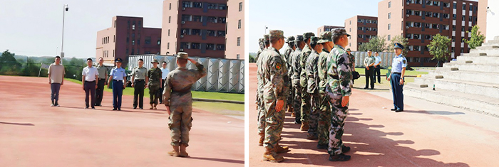 秋高气爽,训练场各方队红旗飘扬,新生们军姿挺拔、口号嘹亮,展示出数日来的艰苦训练成果和良好的精神风貌。张海深等领导一行深入军训现场,慰问承训教官、了解训练进度,对教官们严格施训、科学组训的做法给予了高度评价。其间,张海深提出,“国无防不立,民无兵不安”,大学生是国家的未来、民族的希望,参加军事训练既是学生的光荣义务,更是强体魄、炼意志的时机,教官们要上好同学们的大学“第一课”,真正将“听党指挥、能打胜仗、作风优良”的强军目标内化为自身的学习目标和人生追求。他强调,教官指导军训工作要因材施教,做到因人、因时、因地合理科学开展,真正让军训的目的与价值落到实处。