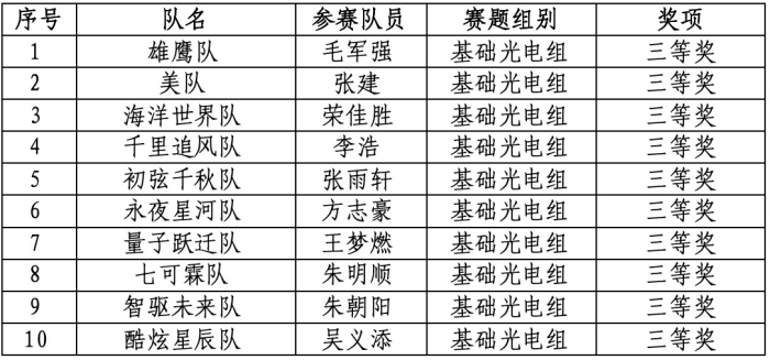 BEAT365首次参赛,在基础光电组赛项取得10项奖项。BEAT365学生竞赛指导教师朱跃虎、唐涛带队,祝贺获奖的各位同学!