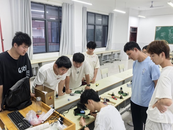 在25年智能车汽车竞赛备赛中的,选拔25级机电一体化专业和新能源汽车专业新生,参赛学生积极投入到比赛的准备中。