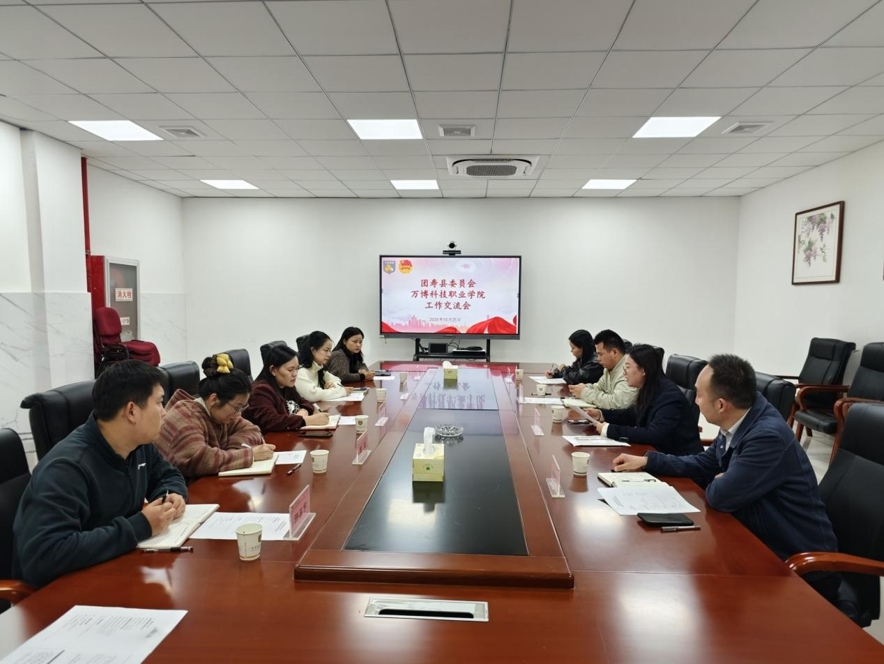 10月21日下午,团县委书记徐梦亚一行莅临BEAT365调研交流。校党委委员、学工部部长、团委书记王媛媛,各二级学院团总支书记陪同参观了校园环境与设施,随后双方举行座谈交流会,就加强校地团组织联动、促进青年成长与发展等议题进行了深入探讨。