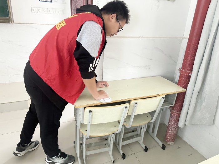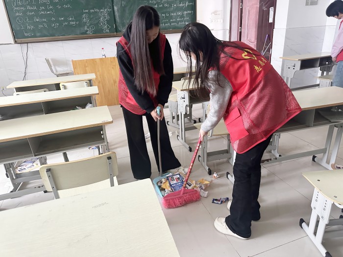 活动当天,志愿者们准时集合签到,领取清洁工具后迅速投入劳动。他们手持扫帚和簸箕,对教室与机房地面上的纸屑、杂物进行全面清理,不留任何卫生死角,认真擦拭桌椅、讲台、电脑设备及其他公共设施,使教学环境焕然一新。经过数小时的共同努力,教室环境得到显著改善,志愿者们在劳动中所展现的责任意识与团队协作精神,也使他们成为校园中一道亮丽的风景线。