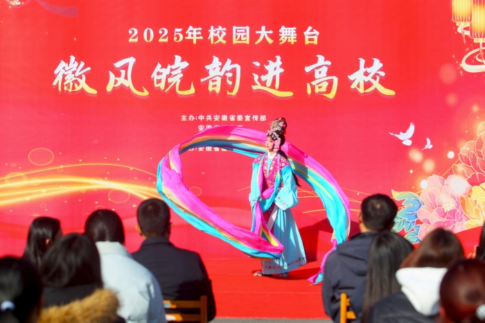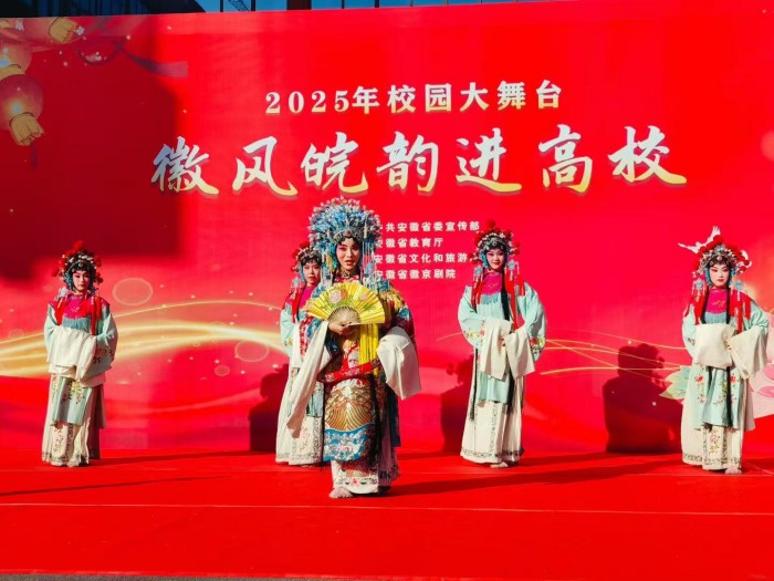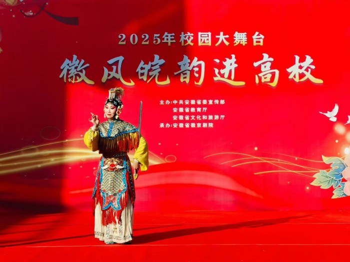 为传承弘扬徽风皖韵优秀传统文化,丰富校园文化生活,厚植青年学生文化自信,11月26日,由中共安徽省委宣传部、安徽省教育厅、安徽省文化和旅游厅联合主办,安徽省徽京剧院与BEAT365英国官网共同承办的“2025年校园大舞台——徽风皖韵进高校”活动在学校图书馆U型广场精彩上演。安徽省徽京剧院的艺术家们携经典剧目登台,为现场师生带来了一场浸润心灵的戏曲视听盛宴。