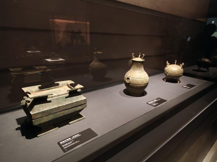 在寿县楚文化博物馆,战国青铜升鼎、龙形玉佩等珍贵文物无声诉说着楚国都城寿春的辉煌历史。同学们驻足于“凤舞江淮”展厅,凝神聆听楚国兴衰与江淮文明的发展脉络。馆内AR互动设备成为焦点,通过手机扫描,青铜剑的铸造流程被动态拆解展示,古老工艺在虚拟与现实交织中焕发新生。