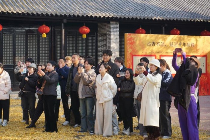 下一站,师生走进孔庙。孔庙是祭祀孔子的庙宇,也是传承儒家文化的重要场所。一进门,浓郁的文化气息扑面而来。两棵七百多年的“元杏”矗立在庭院之中。大成殿庄严肃穆,殿内供奉着孔子的塑像,让人顿生敬畏之情,使人领悟到传统文化中蕴含的道德观念和价值追求。