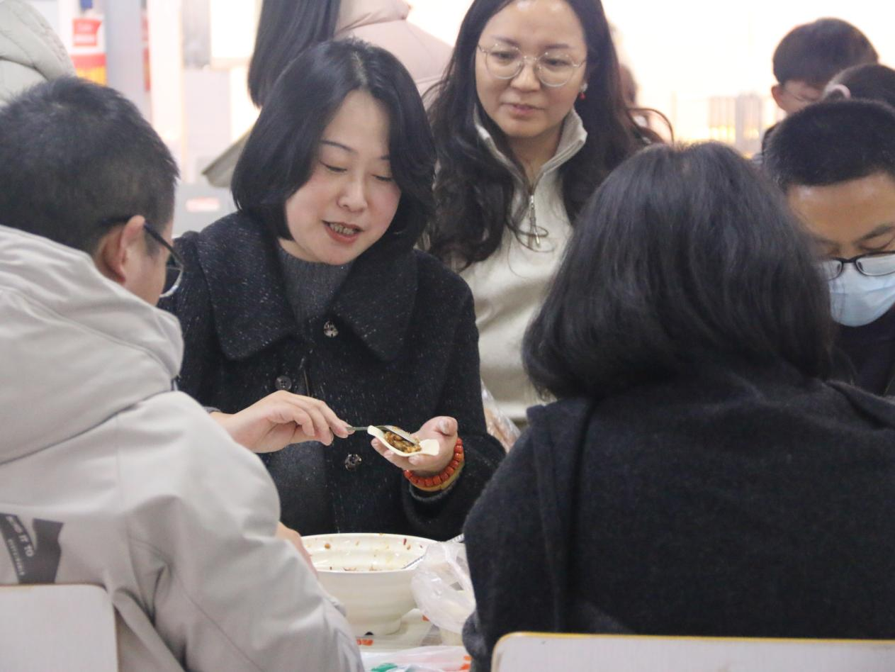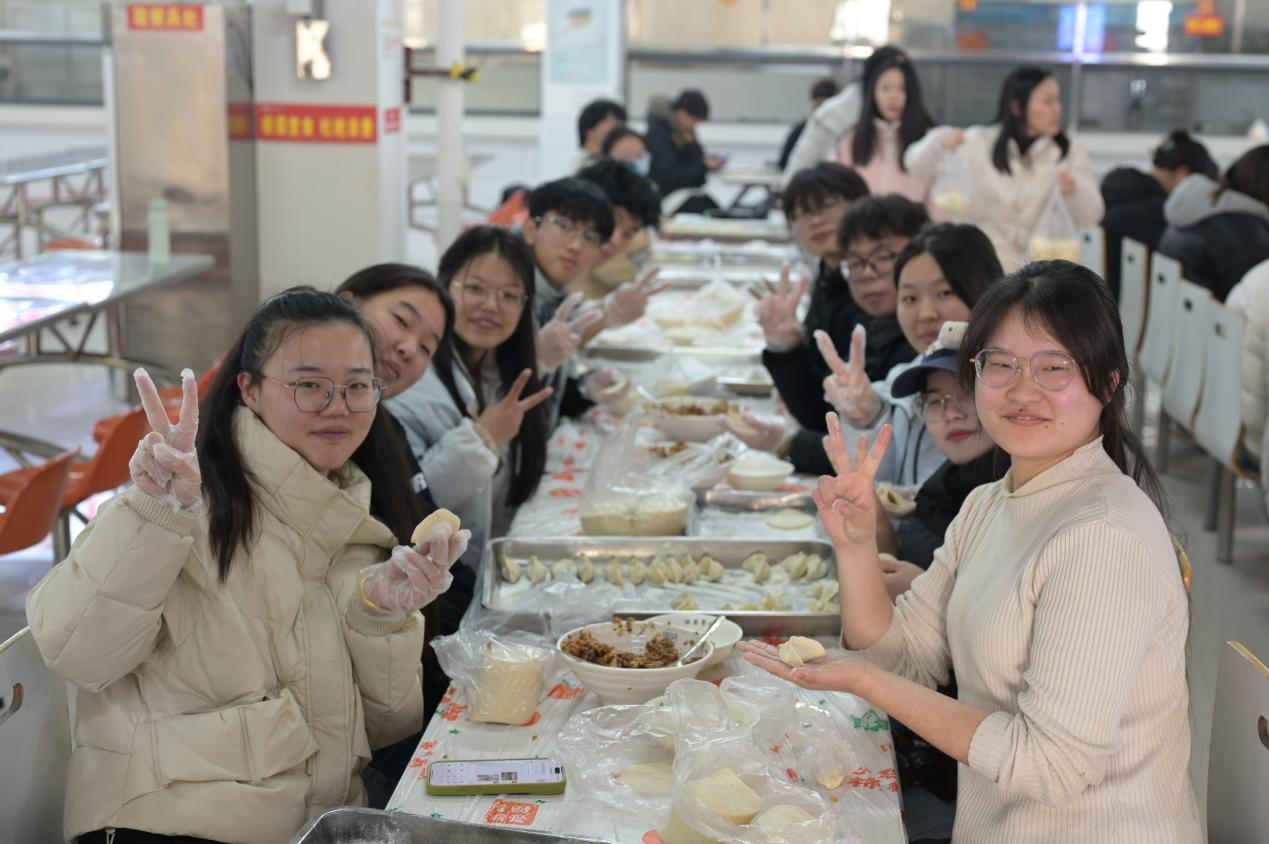 师生们围坐在一起,互相分享包饺子的经验,讲述家乡的冬至习俗。一盘盘饺子,不仅映照着每个人脸上的笑容,更是包裹着师生之间融融的情谊。