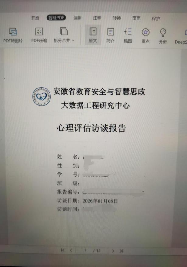 该系统由安徽省教育安全与智慧思政大数据工程研究中心联合开发,合肥综合性国家科学中心数据空间研究院保障数据安全。采用多模态情感识别与自然语言理解技术,内置PHQ-9、GAD-7等标准化心理评估量表,通过语音转录、微表情捕捉、语义情绪分析三重维度采集数据,生成心理评估报告。学院心理健康教育中心已建立“AI初筛→人工复核→分级建档→靶向干预→效果追踪”的完整工作闭环。首轮访谈覆盖2025级新生,单人次约15-20分钟,评估效率较传统人工普查提升70%。实测数据显示,系统在抑郁、焦虑倾向识别方面表现优异,尤其对“低求助动机”学生群体识别敏感度显著高于传统方式,有效解决了筛查中“掩盖性填答”的痛点。