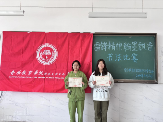 音乐教育学院学生会举办“雷锋精神 翰墨飘香”书法比赛为弘扬雷锋精神,提升学生的书法技艺,营造浓厚的学院文化氛围,音乐教育学院学生会于3月底举办“雷锋精神 翰墨飘香”书法比赛。 书