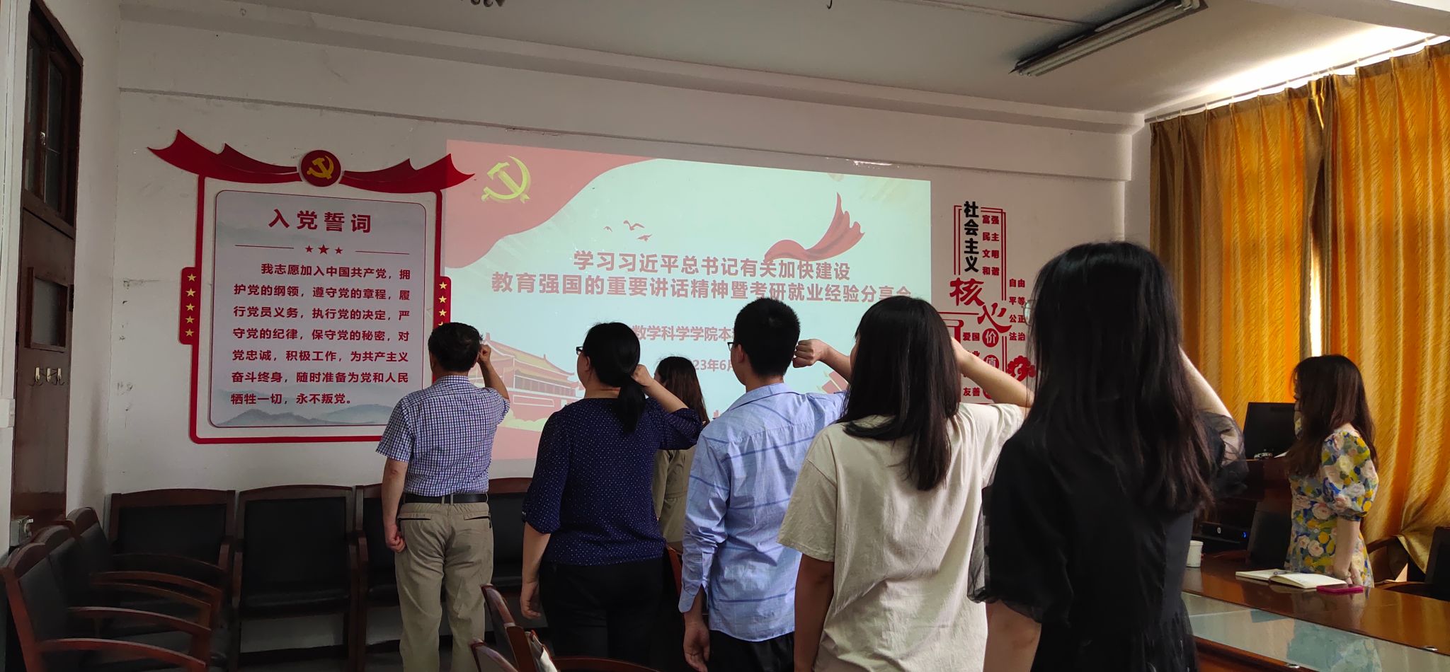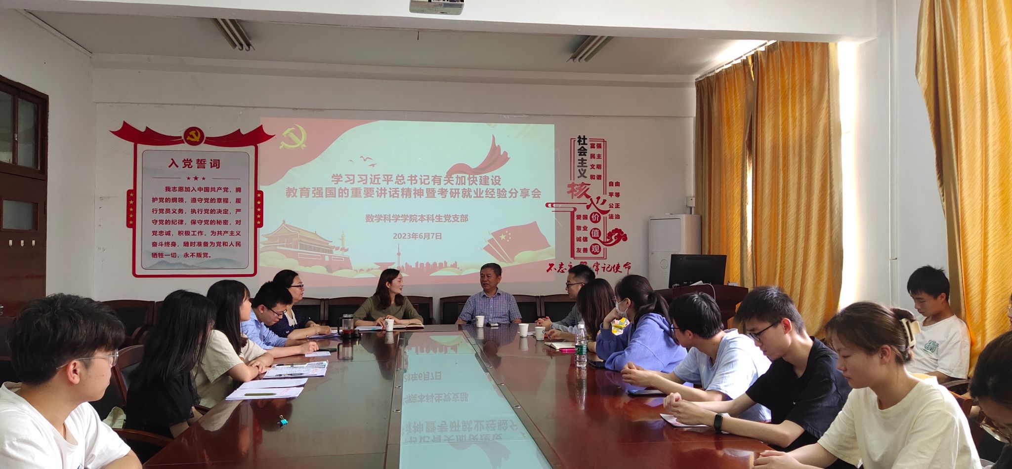 6月7日,sunbet申搏官方网站本科生党支部在动力楼206召开学习习近平总书记关于有关加快建设教育强国的重要讲话精神暨考研就业经验分享会。学习会由本科生党支部书记汪文丽主持,院关工委常务副主任卢殿臣应邀出席,院党务办主任贡崇颖、辅导员尹华、武启慧、朱江涛及学生党员参加。