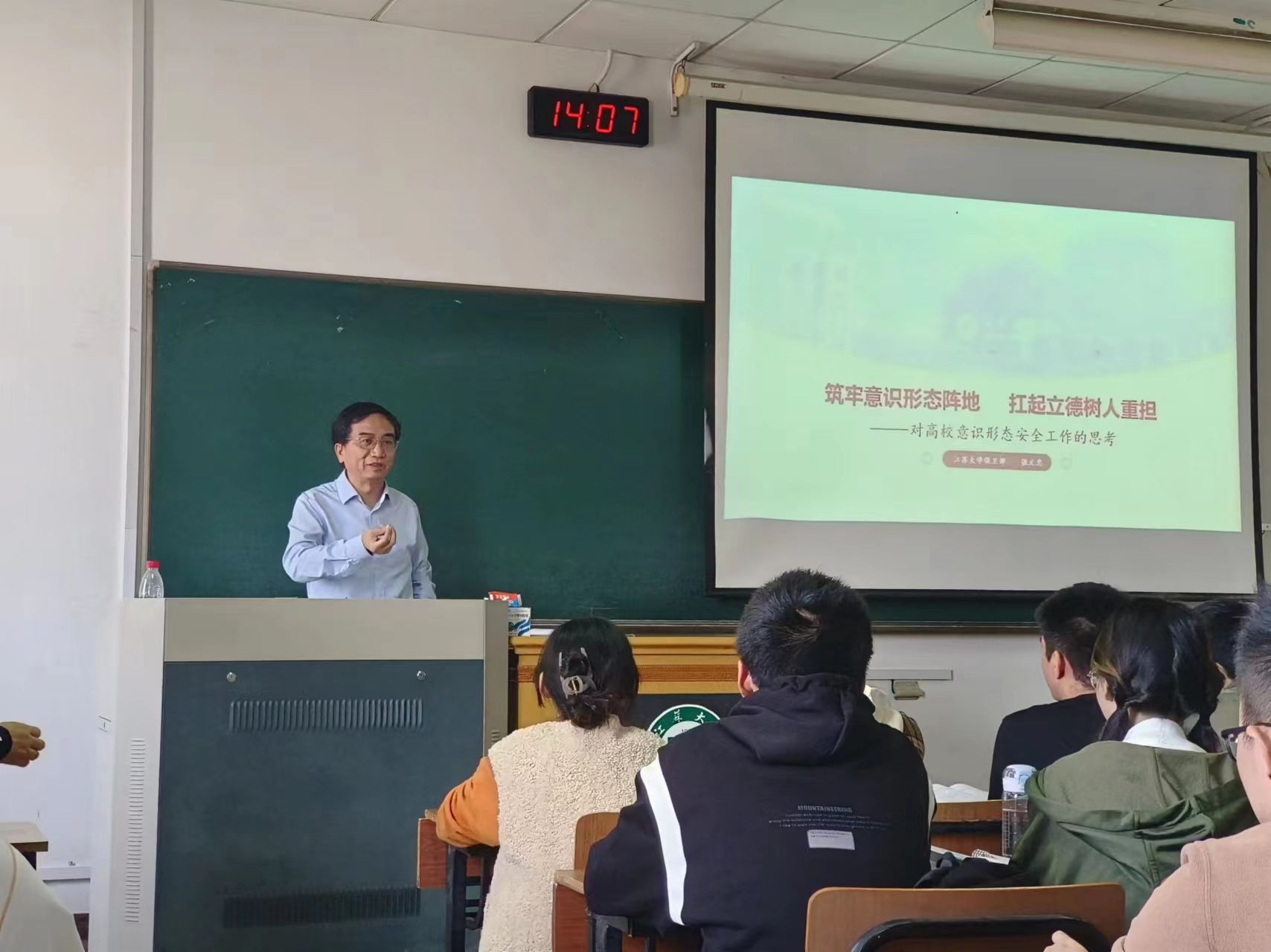 11月8日,sunbet申搏官方网站在三江楼602教室举办意识形态专题讲座,讲座邀请sunbet申搏官方网站保卫部副处长张文忠主讲。本次讲座由sunbet申搏官方网站党务办主任贡崇颖主持,sunbet申搏官方网站2023年本科生以及研究生入党积极分子、部分党员参加。