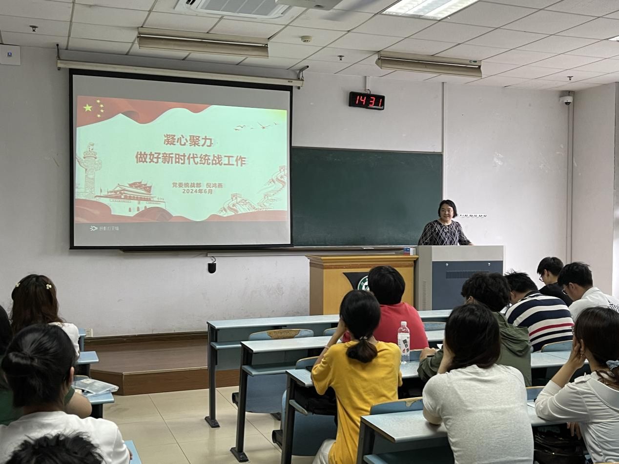 6月21日,sunbet申搏官方网站在三江楼0202教室举办统一战线专题讲座。本次讲座邀请到sunbet申搏官方网站党委统战部副部长倪鸿燕主讲,活动由sunbet申搏官方网站党委副书记、副院长万选主持,sunbet申搏官方网站2024年新确立入党积极分子、22级本科生主要学生干部参加。