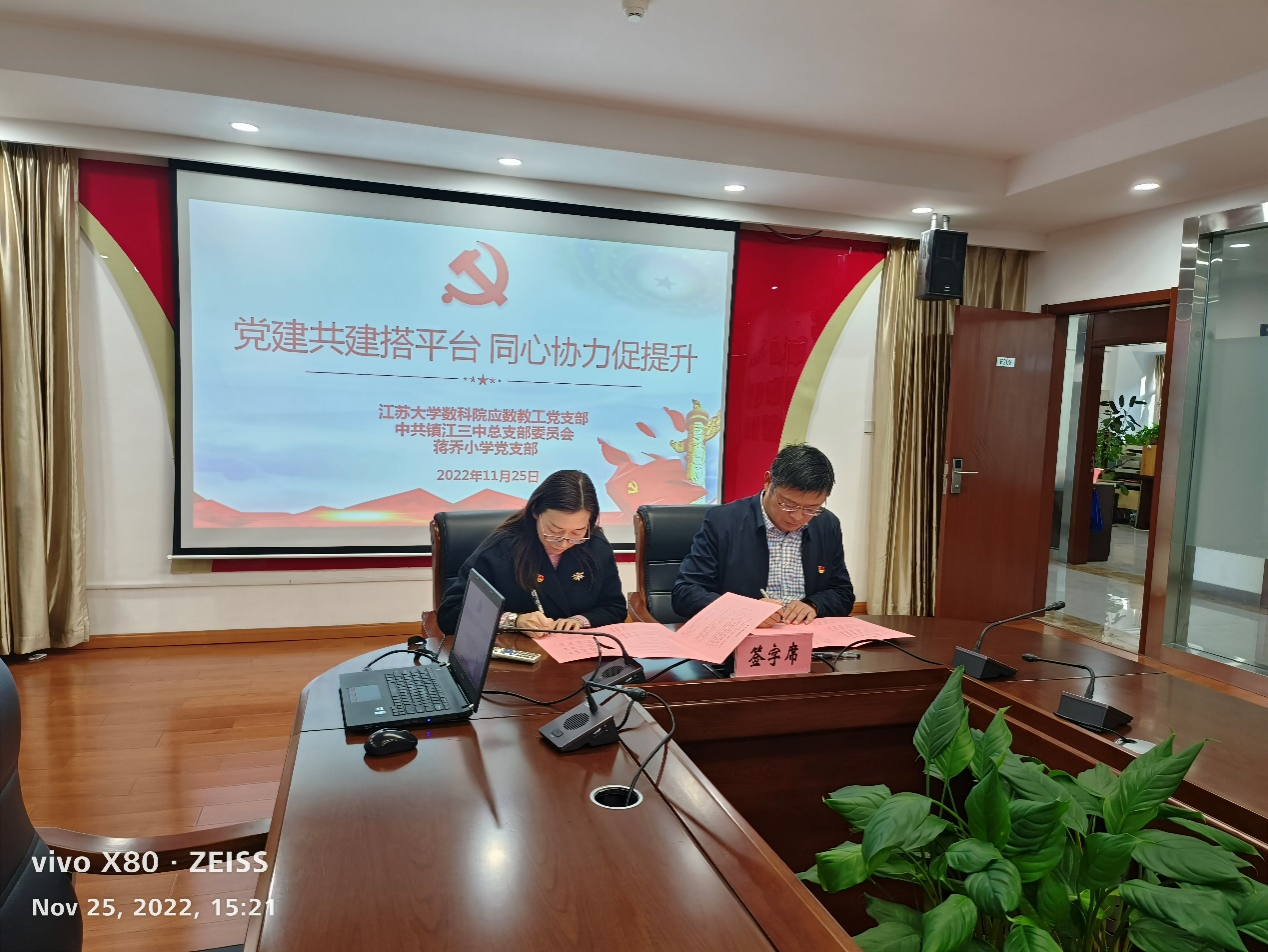 11月25日下午,sunbet申搏官方网站sunbet申搏官方网站数学与应用数学系教工支部与中共镇江三中总支部委员会,镇江市蒋乔中心小学党支部,在镇江市第三中学联合举办党建共建支部活动。
