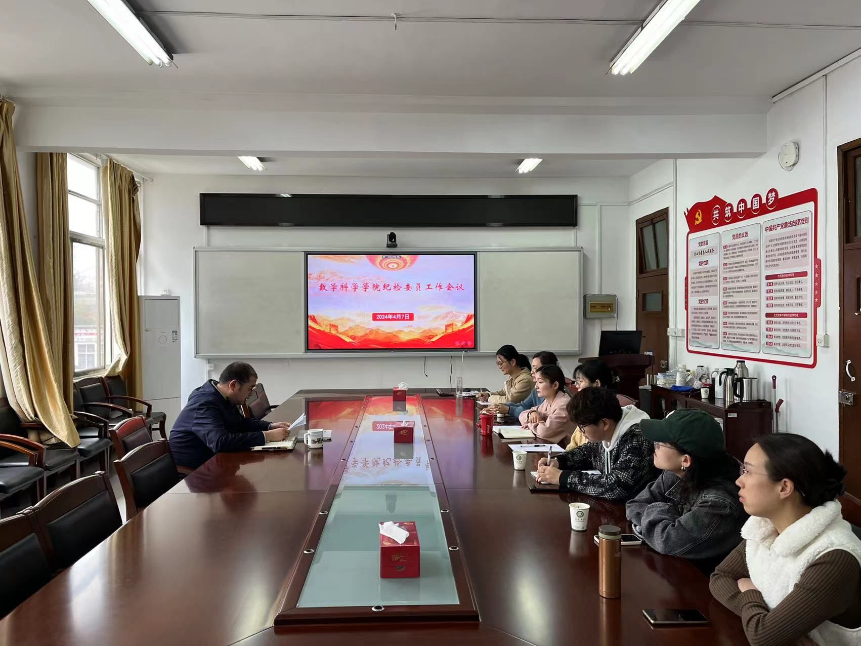 4月7日,sunbet申搏官方网站在会议室206召开学院纪检委员工作会议。会议由院党委副书记、副院长万选主持,院党务办主任贡崇颖及各党支部纪检委员参加。