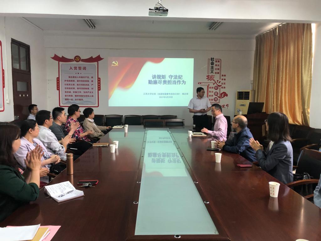 5月19日,sunbet申搏官方网站在动力楼206会议室开展了党规党纪专题讲座,讲座邀请了校纪委副书记杨志春主讲,学院全体中层领导干部、科级干部、各系主任、各支部书记,以及学院所有项目负责人参加了专题讲座。