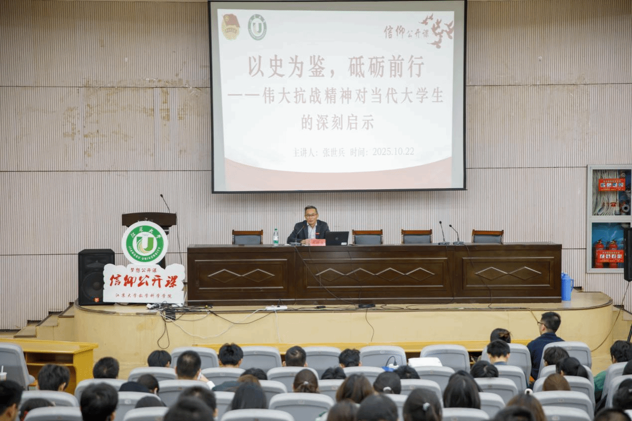 2025年10月22日下午,sunbet申搏官方网站在研究生报告厅举行2025级新生书记课堂暨信仰公开课。学院党委书记张世兵以“以史为鉴,砥砺前行——伟大抗战精神对当代大学生的深刻启示”为题,为全体新生讲授了一堂思想深刻、振奋人心的信仰教育课。