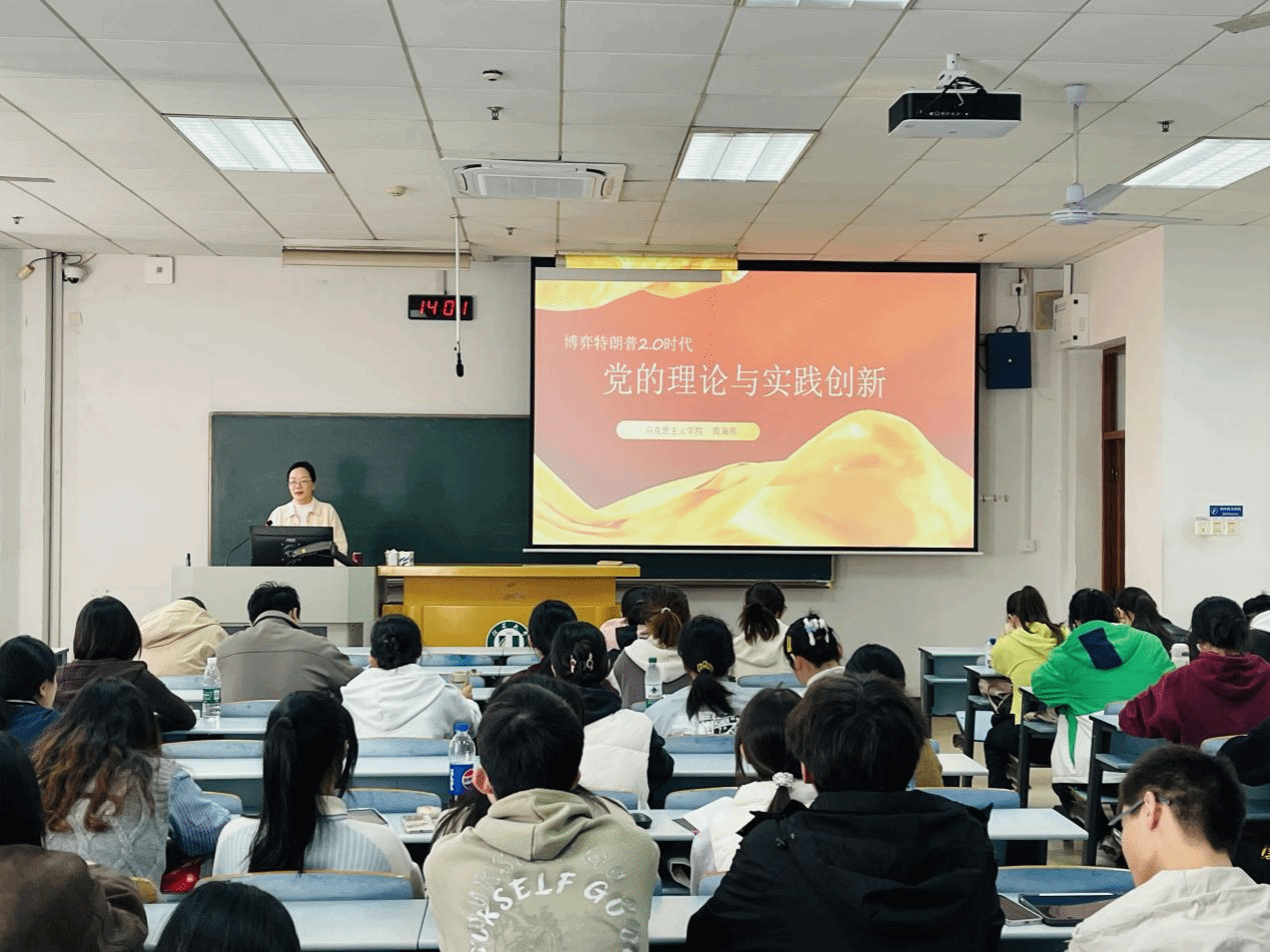 2025年10月24日,sunbet申搏官方网站分党校在三江楼411教室举办党的创新理论宣讲。本次讲座特邀马克思主义学院周海燕教授主讲,由学院辅导员朱江涛主持,全体学生党员及2025年入党积极分子参加。