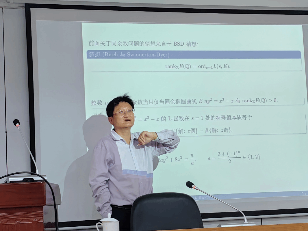 在报告中,田野院士以费马的经典问题为切入点,徐徐拉开 L - 函数历史的大幕。田野院士详细阐述了它们从萌芽到逐步发展的历程,每一个阶段的突破都凝聚着无数数学家的智慧与心血,为数学领域的研究者和爱好者们揭示了 L - 函数这一神秘领域的历史脉络、前沿进展及其与算术问题的紧密联系。田野院士结合自身丰富的科研经历,深入浅出地剖析同余数问题研究中L - 函数理论了这一复杂数学概念,将抽象理论以通俗易懂的方式呈现,使在场听众对同余数问题以及 L - 函数的应用有了更为直观、深刻的认识,现场师生们沉浸其中,仿佛置身于数论发展的历史长河,感受着数学思想碰撞出的璀璨火花 。